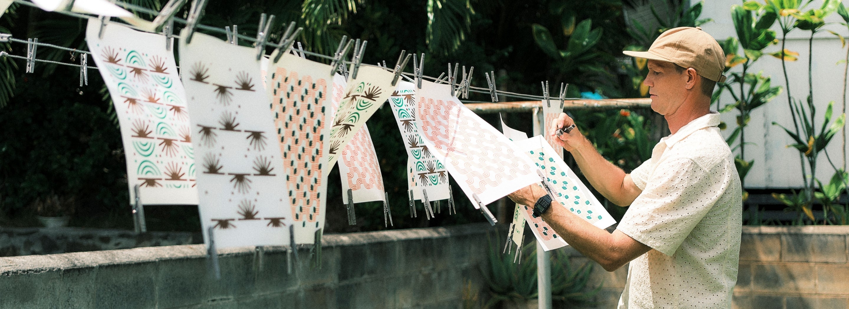 Das Gleichgewicht zwischen Ästhetik und Funktionalität hat etwas, das mich als Designerin wirklich anspricht. Als ich anfing, meine eigenen Muster zu entwerfen, wollte ich einem klassischen Element, das jeder in Honolulu kennt, eine neue Dimension verleihen. Nach langem Überlegen haben wir uns für diese Zusammenarbeit auf zwei Muster geeinigt: "Talking Story" und "Rain or Shine".