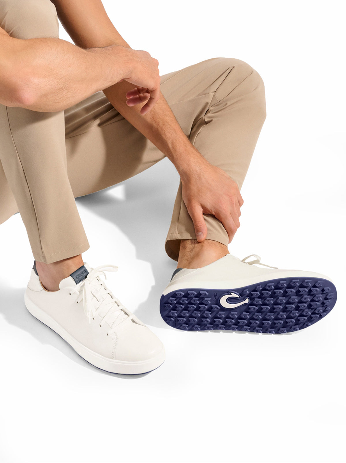 OluKai Craftsmanship: Features Kalo plant-inspired laser-cut upper straps and an embroidered hook logo.