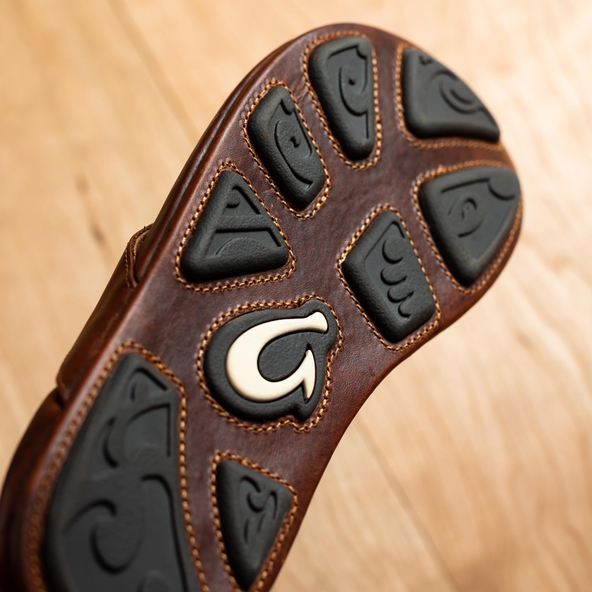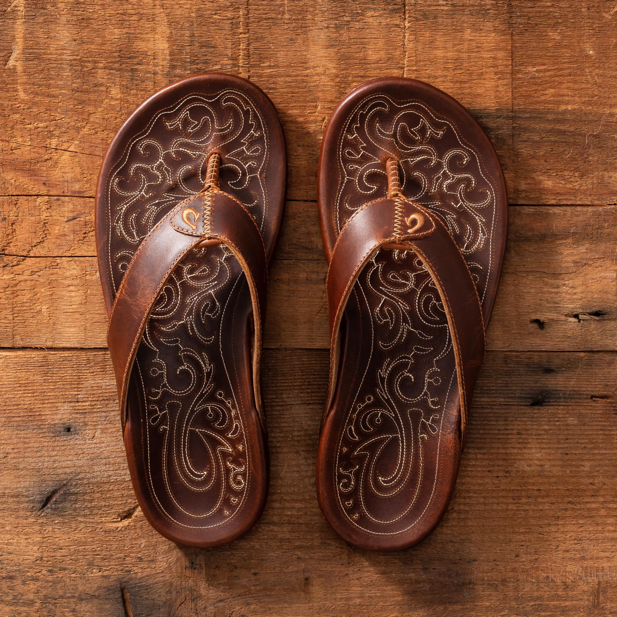 OluKai Handwerkskunst: Die Sandale zeichnet sich durch außergewöhnliche Handwerkskunst aus, darunter von hawaiianischen Sätteln inspirierte Stickereien, ein gesticktes Logo und ein handgenähter Zehensteg aus Leder.