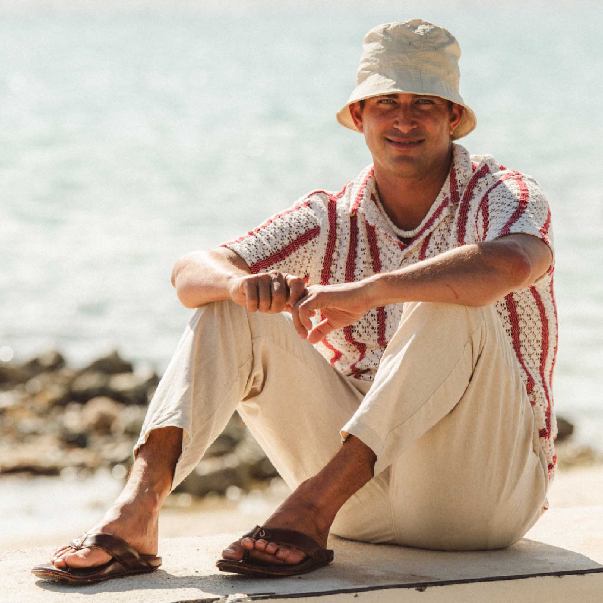 Die Mekila ist eine Hommage an die Paniolo, die angesehenen Cowboys im Landesinneren von Hawaii, und die reiche Viehzuchtkultur, die sie auszeichnet. Gefertigt aus charaktervollem, vollnarbigem Leder und verziert mit Stickereien, die an hawaiianische Sattelnähte erinnern, zeigt diese Sandale bei jedem Schritt außergewöhnliche Handwerkskunst. Sie eignet sich perfekt für Strandausflüge, sollte aber nicht über längere Zeit mit Wasser in Berührung kommen, um ihre Qualität zu erhalten.