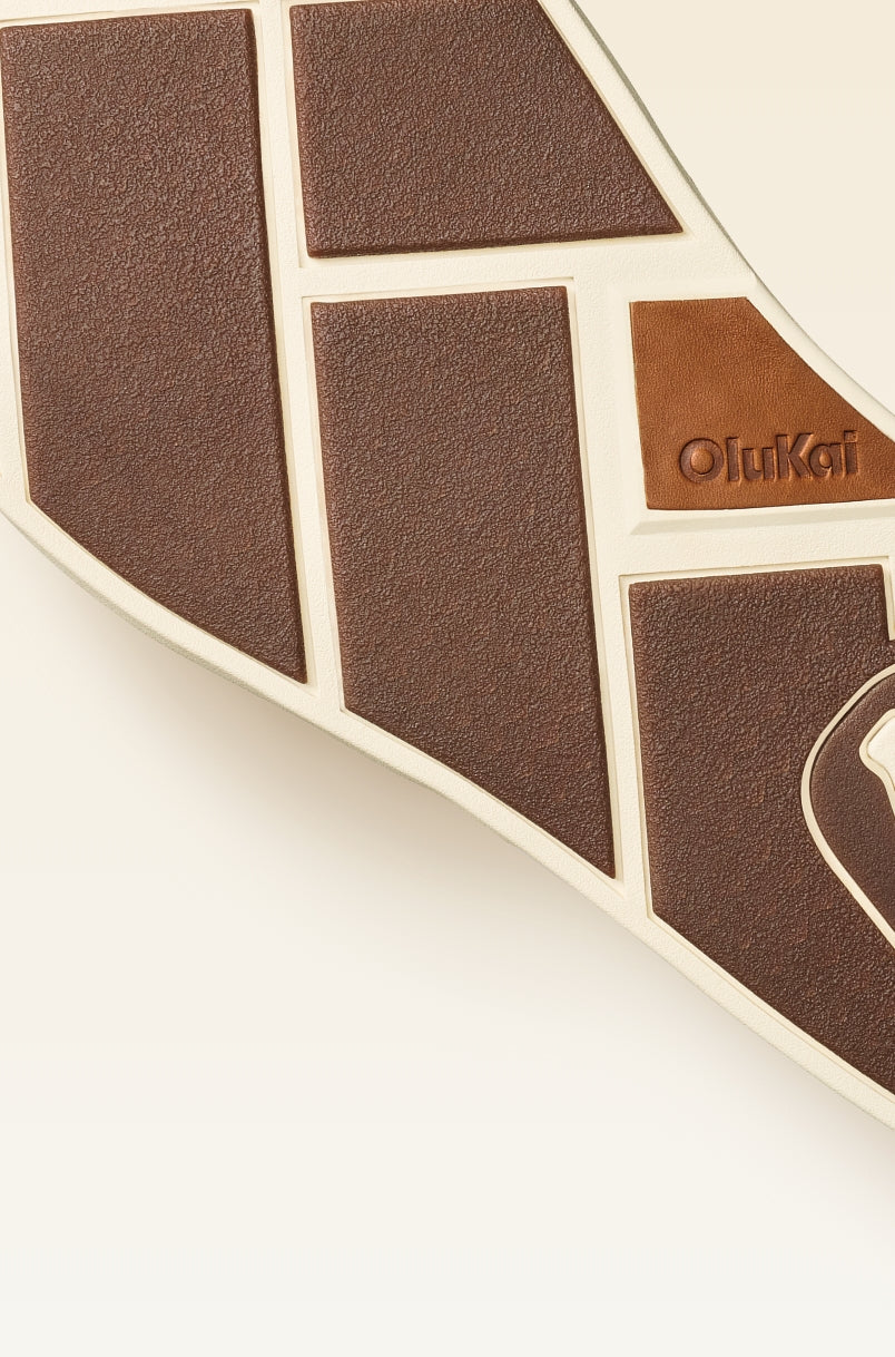 Die Wet Grip Rubber-Außensohle bietet zuverlässige Traktion auf jedem Untergrund. Das Design spiegelt die traditionelle polynesische Kunst des Lauhala-Webens wider und verleiht Ihrem Look eine einzigartige Note.