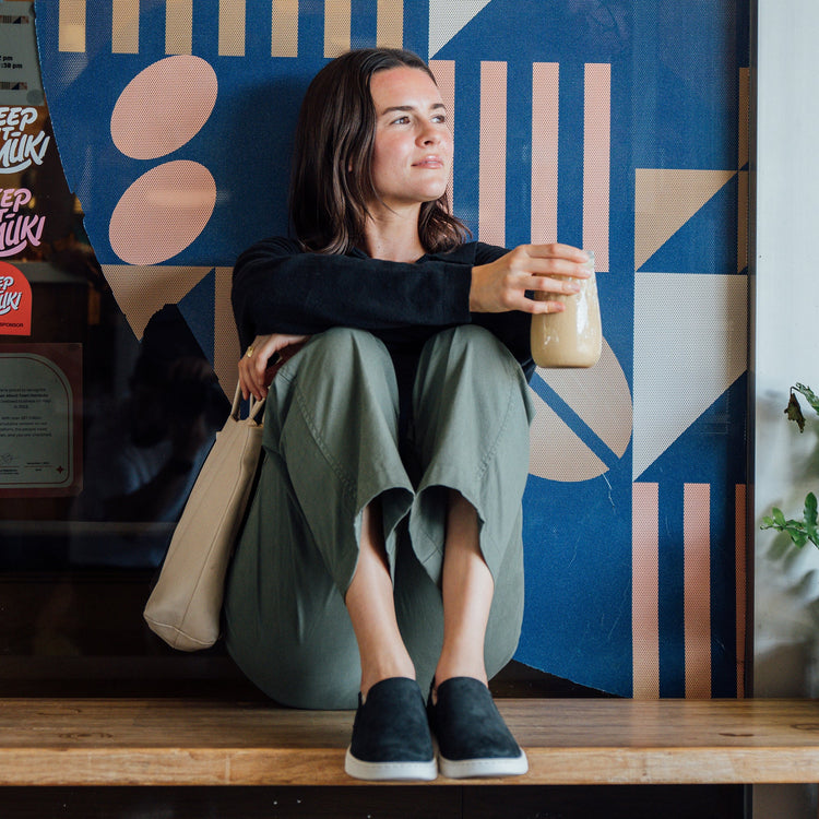Wasserdichtes Nubukleder trifft auf echtes Shearling für eine Mischung aus dauerhafter Funktion und kuscheligem Stil. Das geprägte OluKai-Logo an der Ferse verleiht dem Schuh einen Hauch der typischen OluKai-Handwerkskunst.