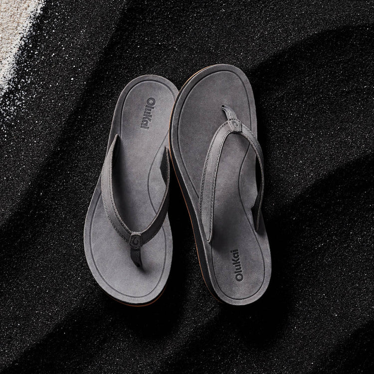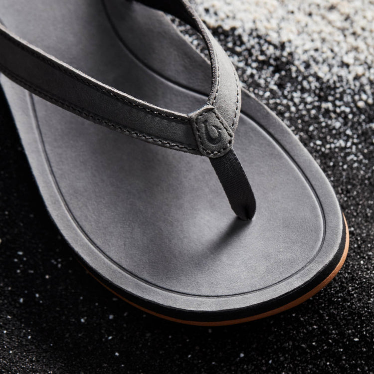 Glatte, ungefütterte Lederriemen und ein weicher Zehensteg aus Nylon sorgen für raffinierten Komfort bei jedem Schritt.